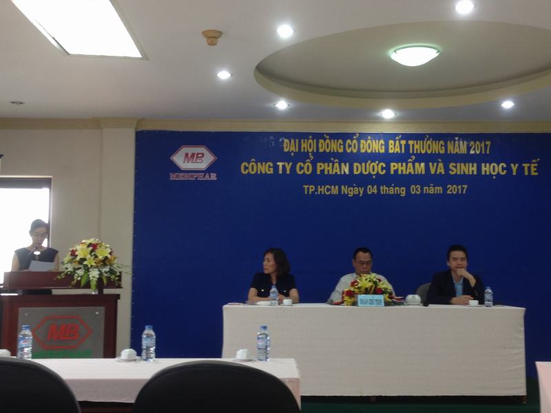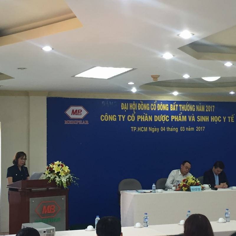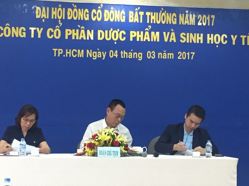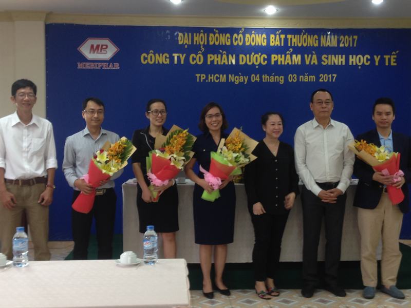 Ngày 04/03/2017, Công ty CỔ PHẦN DƯỢC PHẨM VÀ SINH HỌC Y TẾ đã tổ chức họp Đại hội cổ đông để bầu bổ sung thành viên Hội Đồng Quản Trị và Ban Kiểm Soát nhiệm kỳ 2016 - 2020