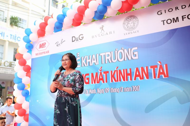 Bà Phan Thị Túy - Tổng Giám đốc Công ty Mebiphar phát biểu trong buổi lễ khai trương Cửa Hàng Mắt Kính An Tài